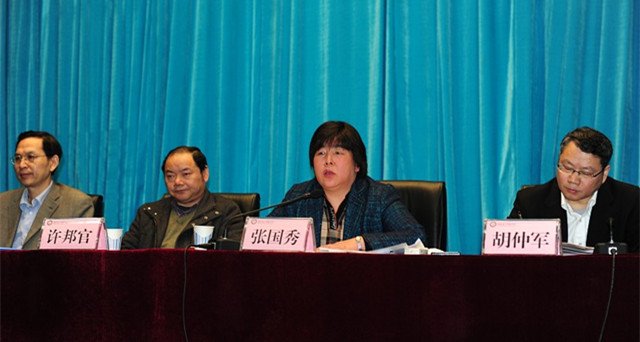 张国秀作重要讲话。她说,学校2015年工作取得了很大的成绩,主要表现在三个方面。一是内涵发展实现了重大突破,学校影响力日渐凸显;二是完善了内部治理体系,学校正朝着规范化、科学化迈进;三是民生方面有了较大改善。对于学校的发展,张国秀指出,我们要按照中央“四个全面”战略布局 、“五大发展”理念,省委“率先、进位、升级、奠基”,省教育厅“分类、发展、内涵、特色、转型”的要求,抢抓机遇,加快步伐,率先发展,争创双一流。要进一步明晰学校发展定位、发展特色和发展步骤,正视发展瓶颈,解决发展中存在的问题,完成学校在“十三五”乃至“十四五”规划期间的目标和任务。