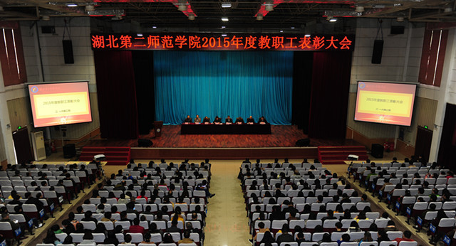 大会宣读了第六届校级青年教师比武大赛获得一、二、三等奖和优秀奖名单,2015年度考核优秀等次人员名单和各学院、部门年度目标考核结果,校级师德标兵和湖北省师德标兵先进个人,2015年度各学院办学成果奖励经费情况和教师教学成果获奖情况,2015年度科研工作优秀集体、先进个人和科研特别奖。此外,我校2015年度还分别获得湖北省大学生创业示范基地、湖北省高校心理健康教育达标中心、民进基层委员会“全国先进集体”、全国大中专学生志愿者暑期“三下乡”社会实践“优秀组织单位”等荣誉。在欢快的乐曲和热烈的掌声中,校领导分别为获奖集体和个人颁发奖牌、证书和奖金。