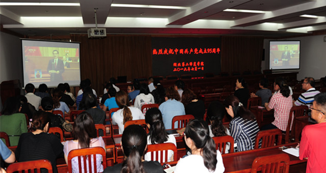 本网讯(学通社记者 尧仕岸 见习记者 朱迎归)7月1日上午10时,我校全体教职工在行政楼五号会议室主会场和20个分会场同时收看中央电视台现场直播在北京人民大会堂的“庆祝中国共产党成立95周年大会”盛况,共庆党的生日。全体教职工在各自的收看现场一起起立唱国歌,大家满怀激情地收看了大会的全程。
