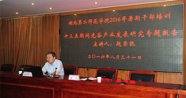 培训班还邀请了光谷创新发展研究院院长赵荣凯作了《关于东湖高新区十三五产业发展的若干思考》的专题报告。他回顾了“十二五” 东湖高新区的发展历程,用详细的数据、图片以及专业分析,解读了东湖高新区“十三五”发展规划。报告信息量丰富、前沿,令人耳目一新。