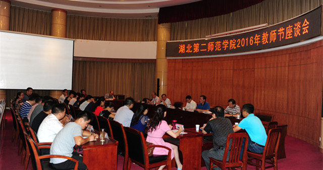 本网讯(学通社见习记者 王雷 李眉萱)9月9日,我校2016年教师节座谈会在行政楼一号会议室召开。校领导胡仲军、许邦官、黄颂、夏力、胡兴等出席,副校长柯美录主持座谈会。