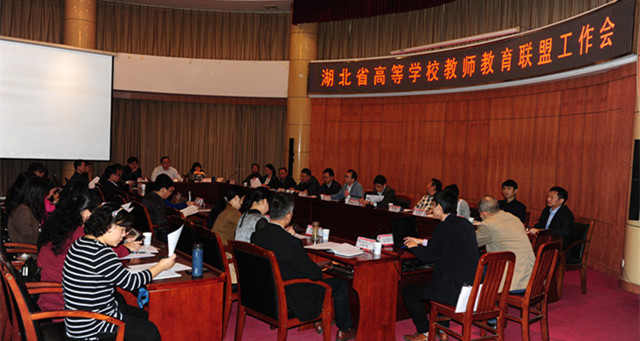 本网讯(学通社见习记者 文静 学通社记者 冯雅洁)10月17日上午,湖北省高等学校教师教育联盟暨“第七届湖北普通高校师范生教学技能竞赛”工作会在我校行政楼一号会议室召开,副校长夏力、省高校教师教育联盟秘书长单位华中师范大学及联盟成员26所高校和高等教育出版社等单位代表出席。