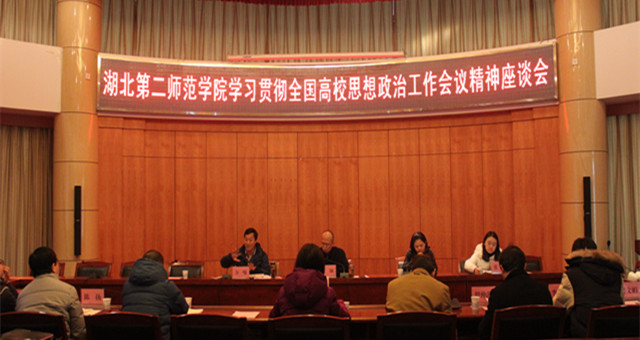 本网讯(通讯员 吴正欢)12月15日上午,我校学习贯彻全国高校思想政治工作会议精神座谈会在行政楼一号会议室召开。党委常委、副校长、宣传部部长黄颂,宣传部、组织人事部、学工部、团委有关负责人,各学院党总支书记、副书记、学工办主任、分团委书记、辅导员代表等参加座谈会。