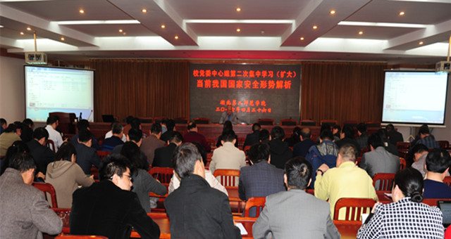 黄颂表示,以党委中心组扩大学习的形式,集中学习国家安全相关知识,是学校党委贯彻落实中央和省委指示精神、增强“四个意识”的重要举措。他强调,一要进一步增强“四个意识”,切实把思想行动统一到习近平总书记“4.15”重要讲话精神上来,严格按照中央和省委的决策抓好贯彻落实;二要进一步筑牢思想防线,切实把好意识形态工作的第一关,认真落实意识形态工作责任清单,管好自家地、守好自家人;三要进一步严明保密纪律,严格遵守党的政治纪律和政治规矩,充分认识保密纪律对全面从严治党要求的重要性。他要求,学校各级领导干部要清醒认识国家安全工作面临的严峻复杂形势,筑牢安全防线,牢固树立“四个意识”,以绝对忠诚的政治品质、高度自觉的大局意识、极度负责的工作作风,落细落实习近平总书记提出的工作总要求,努力把学校建成和谐稳定、安定团结的模范之地,不断推动学校事业取得新成绩!(编辑:道君 摄影:忠强)