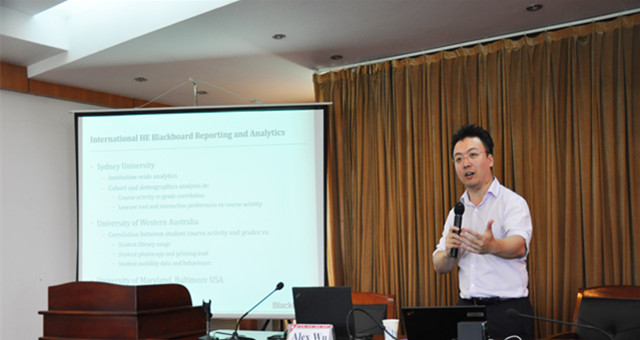 培训会上,吴清辉以《目标导向、过程性评价及持续改进——基于毕博平台的教与学过程的数据分析》为题,具体阐述了如何利用作业、测试、讨论版等工具及呈现出来的课程报告数据来分析其教学目标的达成度、对学生的学习过程进行评价,并从数据分析中寻求解决方案。吴清辉列举悉尼大学和西澳大学在教学中应用毕博平台的成功案例和失败案例,并分别从中总结、分析依托毕博平台的数据分析改进教学的有效方法。