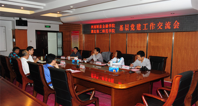 本网讯(记者 李道君)6月5日下午,河南财政金融学院党委副书记田俊廷、组织部长陈亚非、工商管理学院党总支书记夏宗新、外国语学院党总支副书记王黎明一行来校参观考察。在行政楼四号会议室,两校就高校党建工作进行了座谈和交流。