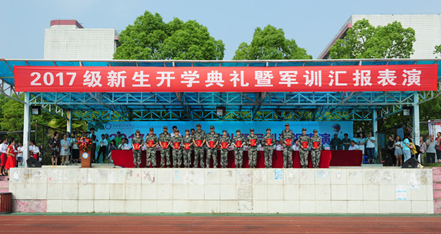 本网讯(学通社记者 严领 见习记者 张欣瑜)金秋送爽,沙场点兵。9月25日上午,2017级新生开学典礼暨军训汇报表演在学校运动场隆重举行。全体校领导、军训部队首长等出席。副校长黄颂主持典礼。