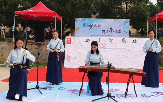 本网讯(记者 曹雨曦 见习记者 张文)5月24日下午,以“爱与梦同歌,游与乐同园”为主题的第六届社团游园会在学校寸草园篮球场拉开序幕。副校长黄颂,学工部、团委主要负责人,大学生社团联合会指导老师等到场观看。
