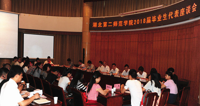 本网讯(见习记者 肖贤志)6月13日下午,2018届毕业生代表座谈会在行政楼一号会议室召开。校长胡仲军出席,相关部门负责人、优秀毕业生代表等参加。副校长黄颂主持会议。