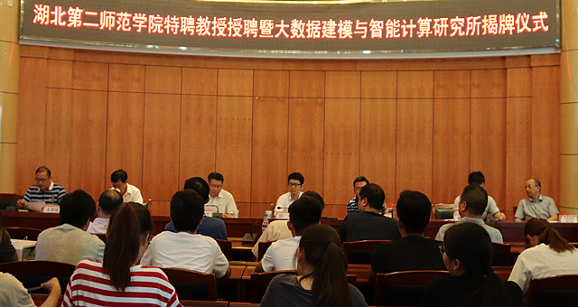 仪式上,胡仲军为陈敏教授颁发特聘教授聘书,柯美录与数学与经济学院院长肖海燕共同为大数据建模与智能计算研究所揭牌。