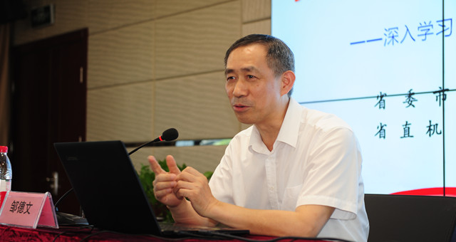 报告会上,邹德文紧紧围绕“引领湖北武汉高质量发展的行动指南”,介绍了习近平总书记视察湖北的基本概况,阐释了习近平总书记视察湖北重要讲话精神、核心要义和精神实质、重大意义,分析了高质量发展的时代内涵、高质量发展的实践基础、高质量发展的推进路径等方面的内容,解读了在习近平总书记重要讲话精神的引领下湖北省、武汉市企业应如何实现高质量发展的问题。