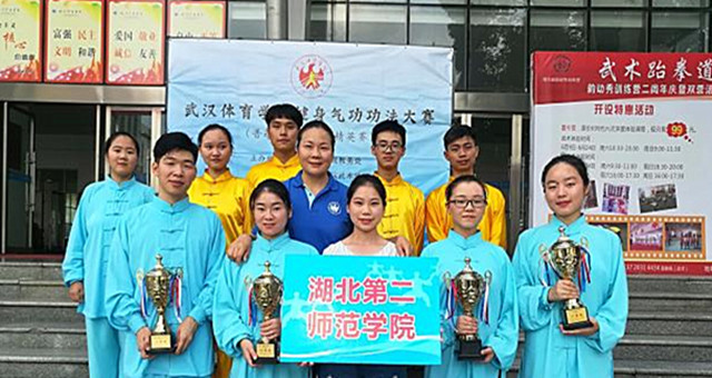 本网讯(见习记者 张文 通讯员 殷傲雪)文以修身,武以养德。近日,由武汉体育学院主办的健身气功功法大赛在该院重竞技馆落幕,由体育学院教师刘立英指导的校健身气功队喜获五个一等奖。其中,2015级电子商务专业的夏良军摘得五禽戏竞赛功法个人赛第一名,气舞、六字诀集体赛、易筋经集体赛、五禽戏四个集体赛项目获得一等奖。