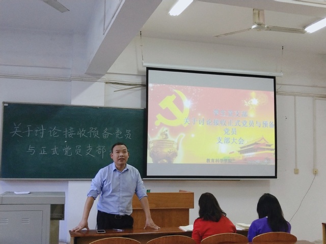 本网讯(记者 陈思敏)11月1日中午,教育科学学院学生党支部关于讨论接收正式党员与预备党员支部大会在五号教学楼5306举行,教育科学学院党总支副书记林志红、学工办主任代黎明参加,辅导员龚敏以及62名学生党支部党员与预备党员参与大会。