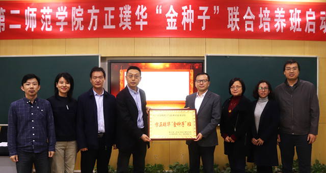本着“资源共享、人才共育、过程共管、合作共赢”的原则,计算机学院与方正璞华将2017级计算机科学与技术—日语双学位班联合共建为“方正璞华‘金种子’班”。“方正璞华‘金种子’班”将实现由计算机学院和方正璞华共建共育、联合培养,在课程设置及教学计划、入企教育及专业实习、就业等方面开展广泛合作、联合培养。从第三学期开始到学生毕业,企业将指派专业技术人员对该班学生实施42周的专业综合实践课程计划。该计划将从基础语言知识强化、大数据与人工智能入门、前端开发框架、虚拟项目练兵、项目实战等对学生进行培养。