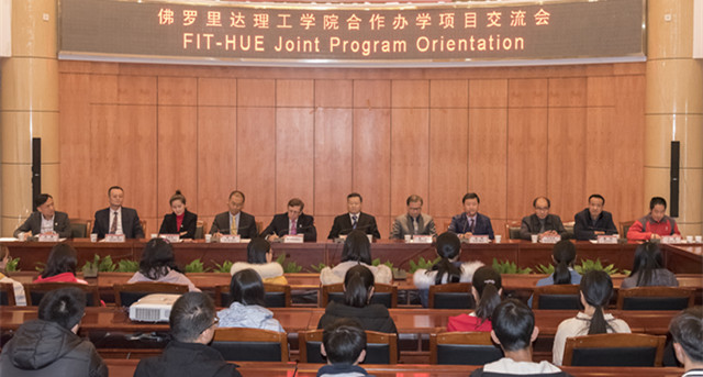 会上,中美合作办学项目负责人王骐博士介绍了项目教学运行及教育部中期评估情况;佛罗里达理工学院副校长特别助理何强博士对留学美国项目作详细介绍。