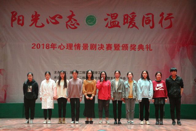 本网讯(见习记者 李倩 刘璋)11月27日晚,“阳光心态,温暖同行”心理情景剧决赛暨颁奖典礼在我校大礼堂举行。学工部副部长李小兵、校心理健康教育中心老师郑婧、艺术学院、物理与机电学院等七个学院心理健康指导老师参加。