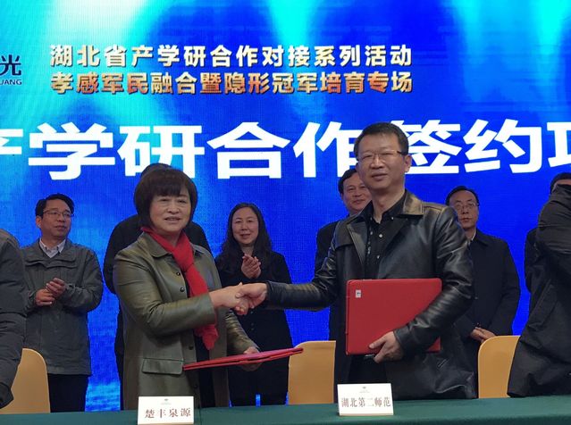 本网讯(通讯员 伍强 罗海峰 记者 张文)根据省经济和信息化委员会在全省各地、市、州产学研合作对接活动安排,11月30日上午,在孝感军民融合专场暨隐形冠军培育专题会议上,我校与湖北楚丰泉源农业股份有限公司在孝感市就产学研合作成功签约。
