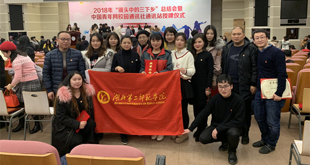 本网讯(通讯员 樊勇 王慧)12月19日,2018年“镜头中的三下乡”总结会暨中国青年网校园通讯社通讯站授牌仪式在对外经济贸易大学隆重举行。我校团委、艺术学院、物理与机电工程学院等相关负责人以及获奖队伍代表、指导老师参加了总结表彰会。颁奖仪式上,校团委书记文敏代表我校上台领奖。