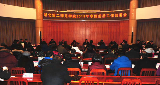 本网讯(记者 程丽鹃)1月9日上午,学校召开2019年寒假前后工作部署会议,进一步学习贯彻落实全国教育大会精神和习近平总书记在庆祝改革开放40周年大会上的重要讲话精神,安排部署学校寒假前后各项重点工作。校党委书记张国秀出席会议并讲话,校长胡仲军主持,全体校领导,各职能部门、学院主要负责人参加会议。