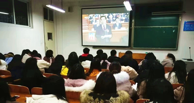 本网讯(通讯员 赵瑶)3月3日晚,马克思主义学院组织全体学生党员、学生干部及2018级思想政治教育1班学生在2号教学楼观看全国政协十三届二次会议视频回放,并展开激烈的讨论。