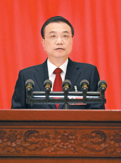 3月5日,第十三届全国人民代表大会第二次会议在北京人民大会堂开幕。国务院总理李克强作政府工作报告。(本报记者 李 舸摄)