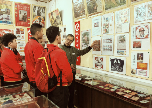 雷锋雕塑艺术品、关于雷锋的唱片、磁带、光盘、印有雷锋头像的小物品……武汉雷锋陈列馆内,身着红色院服的体育学院学生仔细观看馆内展品,认真聆听武汉雷锋陈列馆馆长黄德宝的讲解。黄德宝从雷锋精神是永恒的、做雷锋精神的种子、把雷锋精神广播在祖国大地上、雷锋精神走进新时代四方面对雷锋精神做了详细的解读。他说:“把我收藏的雷锋藏品通过这种形式展示出来,能够让更多的人知道雷锋、了解雷锋,起到宣传雷锋、弘扬雷锋精神的作用,产生一定的社会效益,我觉得是非常值得的。”