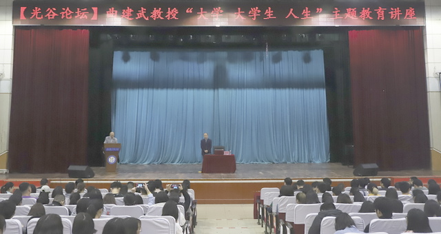 本网讯(学通社记者 张维熙)为深入学习贯彻习近平总书记在学校思想政治理论课教师座谈会上的重要讲话精神,扎实推进我校学生思想政治教育工作,3月21日下午,学校邀请“时代楷模”、“全国优秀教师”、大连海事大学辅导员、博士生导师曲建武教授,在大礼堂为师生作“大学·大学生·人生”主题教育讲座。学工部、团委相关负责人,各学院党总支书记、副书记、学工办主任、辅导员以及学生代表参加,副校长黄颂主持。