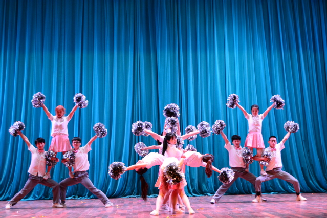 伴随着动感的音乐,绚丽的灯光,各学院啦啦操代表队为评委和观众们带来了精彩的表演。文学院代表队女生身着粉色上衣,白色短裙,踩着节拍,有序入场。她们的动作整齐流畅,完美地诠释了啦啦操的“精”、“气”、“神”,她们的表演赢得了评委和全场观众的热烈掌声。