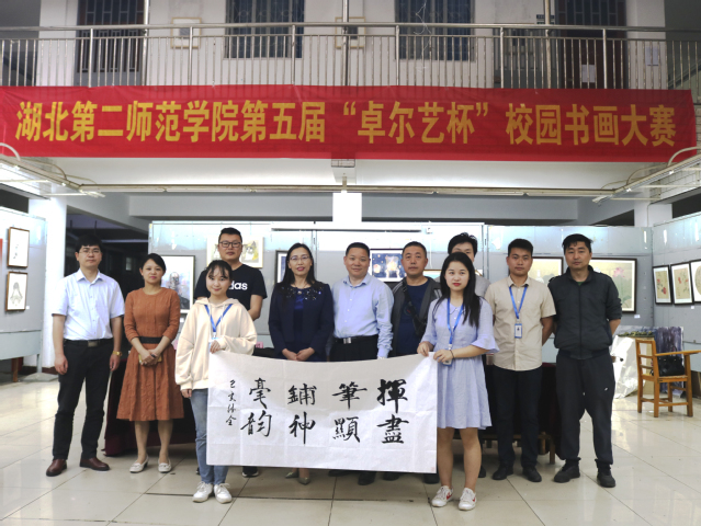 本网讯(见习记者 何雯月)4月25日下午,由我校主办,校大学生社团联合会承办的第五届“卓尔艺杯”书画大赛在艺术学院一楼展厅举行。校党委学工部部长金殿中,校团委书记文敏,副书记陈扬及艺术学院党总支书记雷静和,院长金波,分团委书记李京和美术系老师等出席。
