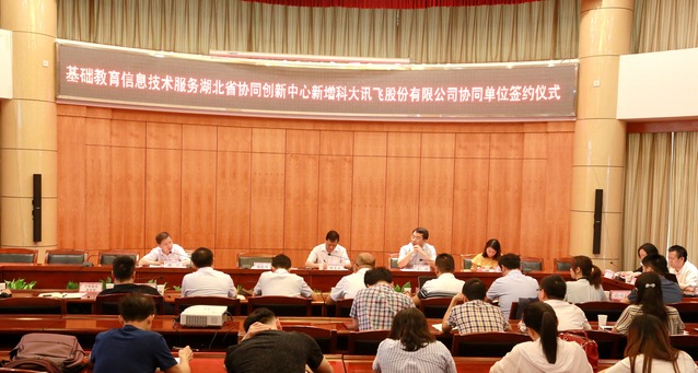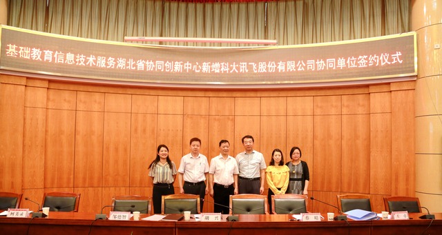 本网讯(通讯员 覃姗姗 见习记者 廖梦奇 )5月29日上午,我校基础教育信息技术服务湖北省协同创新中心新增科大讯飞股份有限公司协同单位签约仪式在行政楼一号会议室举行。湖北省教育信息化发展中心主任邹德智,科大讯飞股份有限公司教育事业群副总裁王卓、湖北公司总经理蔡晴,我校副校长胡兴出席。校党委副书记柯美录主持会议。