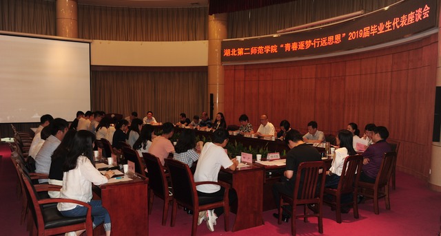 本网讯(见习记者 唐杰)6月19日下午,“青春逐梦·行远思恩” 2019届毕业生代表座谈会在行政楼一号会议室举行。校党委书记张国秀、副校长夏力出席,副校长黄颂主持会议。