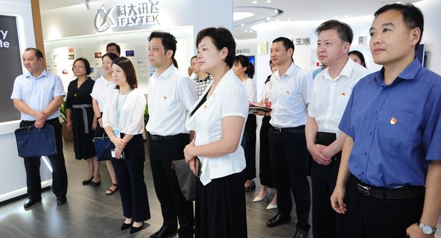 会后,在我校副校长胡兴的陪同下,余学敏等省直属机关三个支部党员同志一同前往我校计算机学院实习实训共建基地——科大讯飞武汉分公司实地考察。