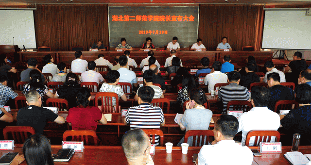 本网讯 7月19日下午,学校在行政楼五号会议室召开干部教师大会,宣布省委任命决定:郑军任湖北第二师范学院院长。省委组织部部务委员周志红,省委教育工委委员、省教育厅副厅长、党组成员余学敏,省委组织部干部五处及省教育厅干部人事处负责同志出席会议。学校领导班子成员,全体中层领导干部和教授代表等参加会议。会议由校党委书记张国秀主持。
