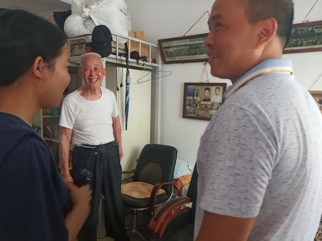 图为实践队跟随基地负责人来到李国炎老人家中(通讯员 帅梦思 摄)