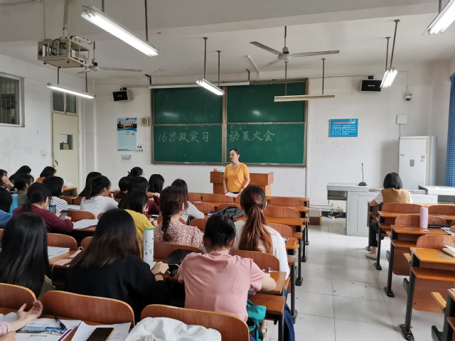 本网讯(通讯员 余婵)9月18日中午,马克思主义学院2019年实习动员大会在二号教学楼2201教室召开。马克思主义学院副院长张玲、教师刘雯及2016级思想政治教育1班全体学生与会。