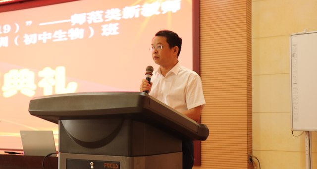 本网讯(见习记者 廖梦奇)9月19日上午,2019“国培计划”师范类新教师教学技能提升培训(初中生物)开班典礼在我校图书馆一号报告厅举行,校长郑军出席并讲话。