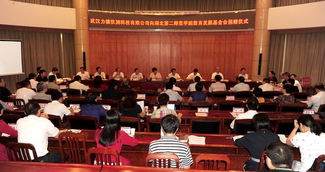 捐赠仪式上,武汉力德仪测科技有限公司总经理邓磊向学校教育发展基金会捐赠100万元,主要用于支持物理与机电工程学院电子信息实验室建设。邓磊希望,与我校继续深化在多个领域的合作,共同培养具有工匠精神和创新精神的技术人才,希望信息实验室的建设能够帮助学生提高个人专业水平和实践能力。