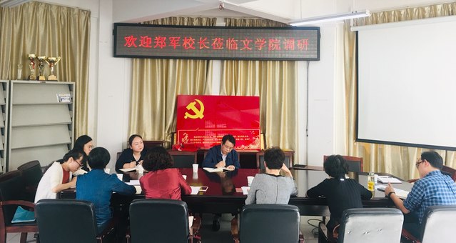 本网讯(通讯员 李晓峰 )10月9日下午,校长郑军带队到文学院调研指导“不忘初心、牢记使命”主题教育工作。