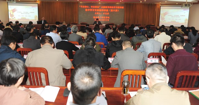 本网讯(记者 程丽鹃)10月15日上午,学校“不忘初心、牢记使命”主题教育集中学习在行政楼五号会议室举行。华中师范大学马克思主义学院院长、思想政治教育研究所所长万美容教授受邀作了题为《以习近平总书记教育重要论述为指导,全面落实立德树人根本任务》的辅导报告。全体校领导出席,中层副职以上干部、党支部书记参加,党委副书记柯美录主持。