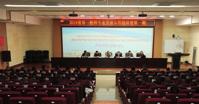 本网讯(通讯员 邵玲 融媒体记者 鲁敏 易娉羽 )10月24日上午,由我校承办的湖北省“中小学幼儿园教师素质提升工程(2019)”——教师专业发展示范校培育专项第一期研修班开班典礼在新图书馆一号报告厅举行。教育部全国教育干部培训专家委员会原副主任委员李文长,我校副校长、湖北省干训中心教室继续教育中心主任胡兴出席,仪式由我校教育科学学院院长、湖北省教师教育研究中心主任张红梅主持。