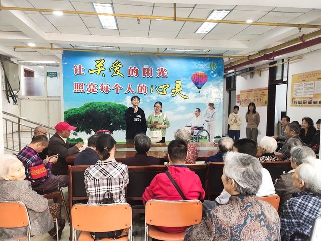 本网讯(通讯员 聂紫绚 融媒体记者 刘佳)10月19日,外国语学院的志愿演出团队来到了汽发社区进行志愿表演。为了感谢先一辈的辛勤劳动,志愿者们为老人们歌唱、朗诵、讲故事,给他们带去温暖和欢笑。