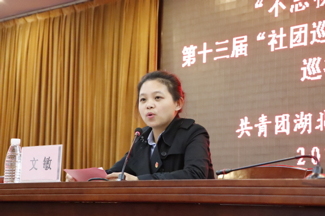 文敏在发言中谈到,我校社团管理不断在改革中发展,加强整合资源,加大了对学生社团的管理。直至目前,我校共有社团71个,涉及公益志愿、文化艺术、创新实践和体育竞技等多个类型。文敏说,近年来,各个社团坚持与时俱进,开展了丰富多彩的校园文化活动,促进了学生社团成长;她鼓励广大学生开展丰富多彩的社团活动,将青年学生主体教育落实到活动中。她解释,此次巡礼节为期两个月,是展示学生社团风采,促进社团发展,丰富校园文化生活的重要载体。