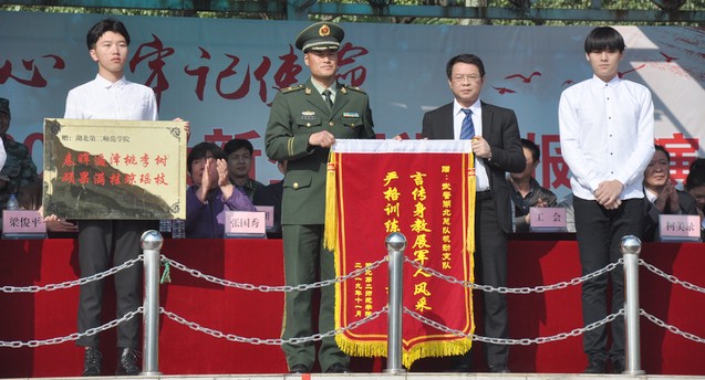 本网讯(融媒体记者 田佳)11月22日上午,我校2019级新生军训汇报表演在学校运动场隆重举行。武警湖北总队机动支队三大队政治教导员梁俊平少校,我校校领导张国秀、郑军、柯美录、刘昕、夏力、胡兴出席,副校长黄颂主持。
