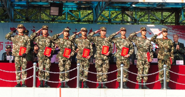 梁俊平少校充分肯定了我校学子在军训期间的优异表现和顽强拼搏的精神。他寄语新生,要积极进取,培养团队合作精神,养成良好的生活习惯,拥有健康的大学生活。2019级物理与机电工程学院常晓曼同学作为新生军训标兵代表发言。