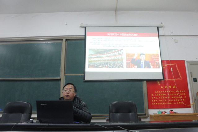 本网讯(通讯员 李丹丹)11月26日上午,数学与经济学院(以下简称数经院)在10号教学楼二楼会议室举办了“中国梦——实现中华民族伟大复兴”的第五期党课,数经院党总书记刘原主讲,数经院学生党员参加。