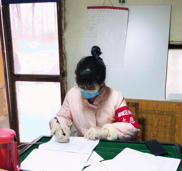 加入社区“大家庭”后,赵茜雅便投身于“全民量体温”项目中。正值襄阳大雪,她忙碌而又井井有条地守着自己的岗位,来回巡查小区,没有交通工具就徒步为居民分发蔬菜;拉紧防护服,拿着体温枪挨家挨户筛查登记;和社区工作人员一起坚守卡口,对持有通行证的居民检测排查。