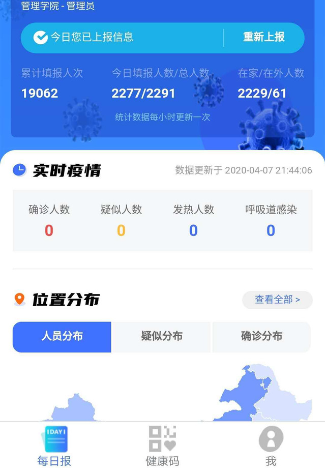 针对技术运用效果,管理学院相关负责人表示:“通过平台大数据,我们能够直观准确地掌握学生目前的地理方位等有效信息、立体了解学生的身体状况,为进一步压实疫情防控责任,细化工作方案做出来积极探索,也为后续复工开学做了有利铺垫。”管理学院联系校领导、校党委副书记柯美录对管理学院的创新举措表示充分肯定,鼓励学院继续细化工作内涵,切实以学生为中心做好疫情防控各项工作。