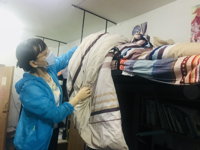 平日里可亲可敬、循循善导的师者,摇身一变为“阳光使者”,他们以呵护学生的心态,小心翼翼地搬动每一床被子,细心地将学生的被褥搬到指定位置晾晒,并写好宿舍号、床位号等标识,注意每一处细节工作。
