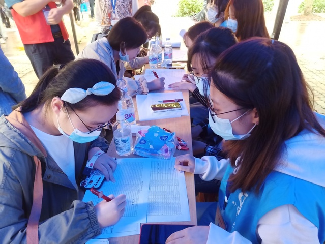 本网讯(通讯员 张胤熙)9月20日上午,外国语学院(以下简称外院)迎来了231名2020级本科新生,新生的到来为外院注入新鲜的活力。最近武汉气温骤降,在迎新当天,还下着雨,但这丝毫没有影响迎新学长学姐们激动的心情,大家穿着红、蓝色的志愿服,早早的就来到外院设立在新生宿舍楼下的接待点,等待着前来报到的20级小萌新们。