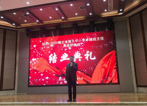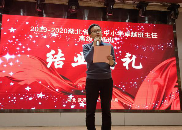 本网讯(通讯员 应亮红)10月29日上午,2019-2020年湖北省楚天中小学卓越班主任高级研修班结业典礼在潮漫国际酒店举行。教育科学学院党委书记乐三明、党委副书记林志红、副院长陈荣、教师教育学院副院长张和平参加。